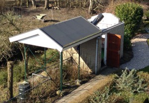 Ik heb achter het huis een sterrenwacht gebouwd, dit is een klein huisje met daarin een zwevende vloer met in het midden een telescoop die vast op beton staat.